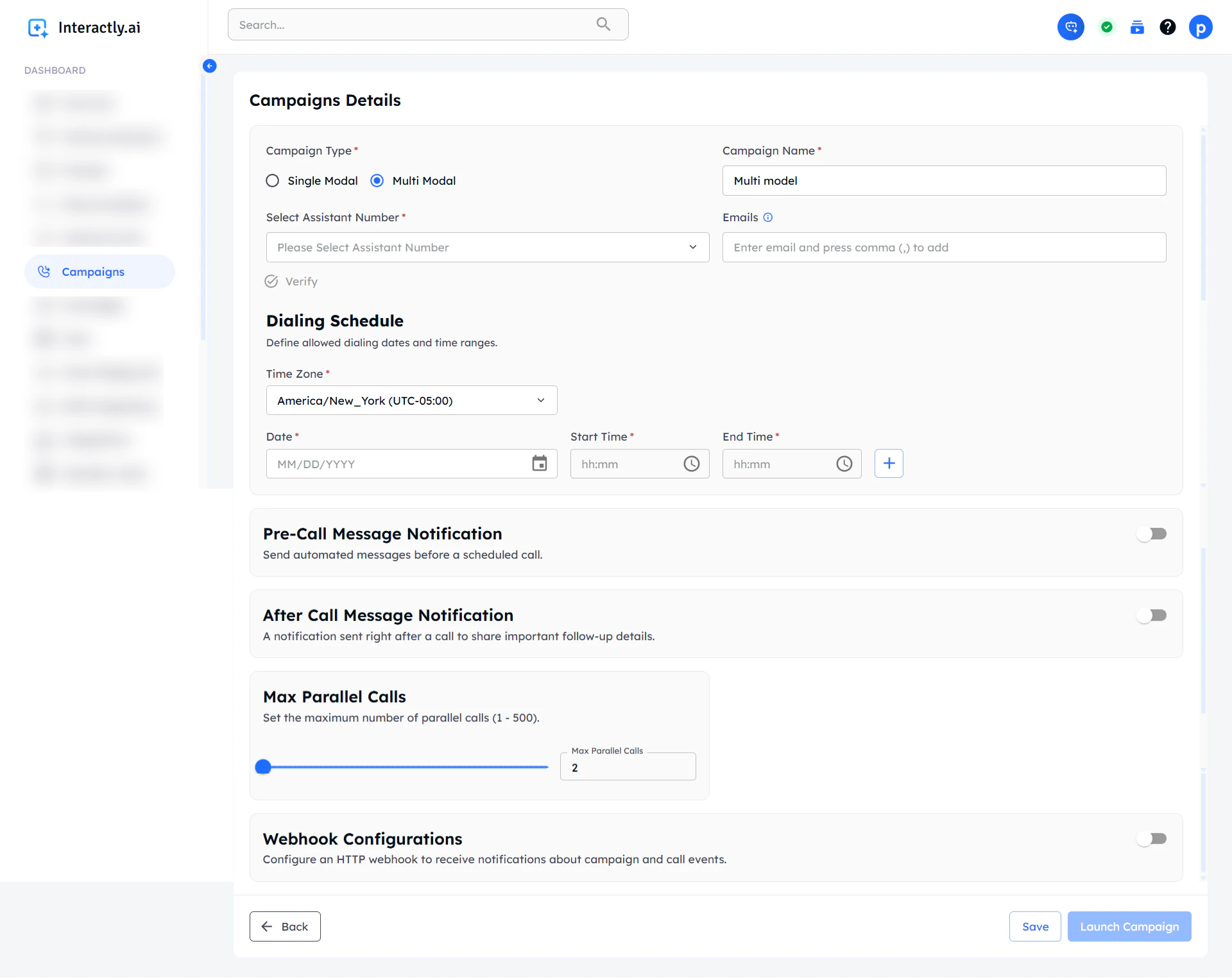 Multi-modal campaigns inherit all single-modal campaign features:Assistant Selection