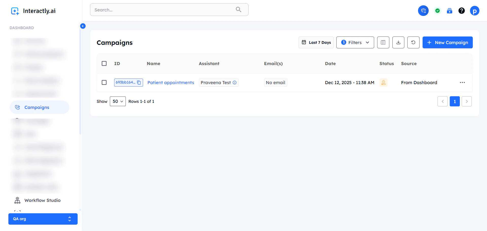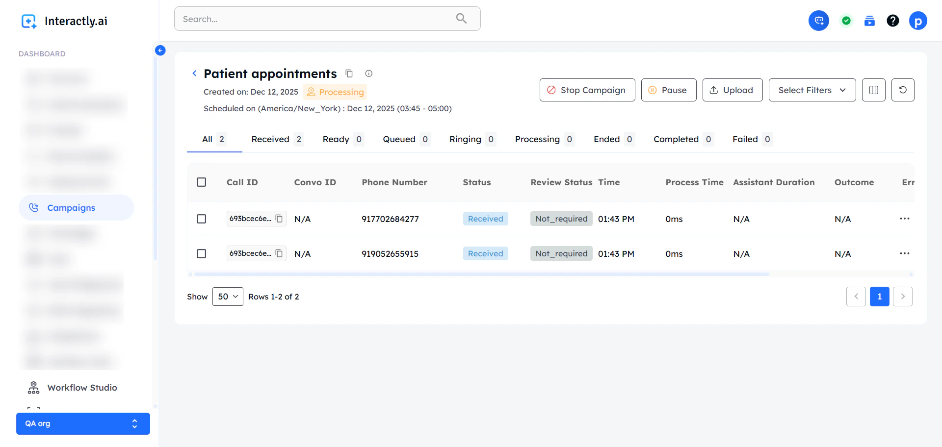 - The campaign status will be changed to “completed” once all the running calls are either “finished” or “failed”.