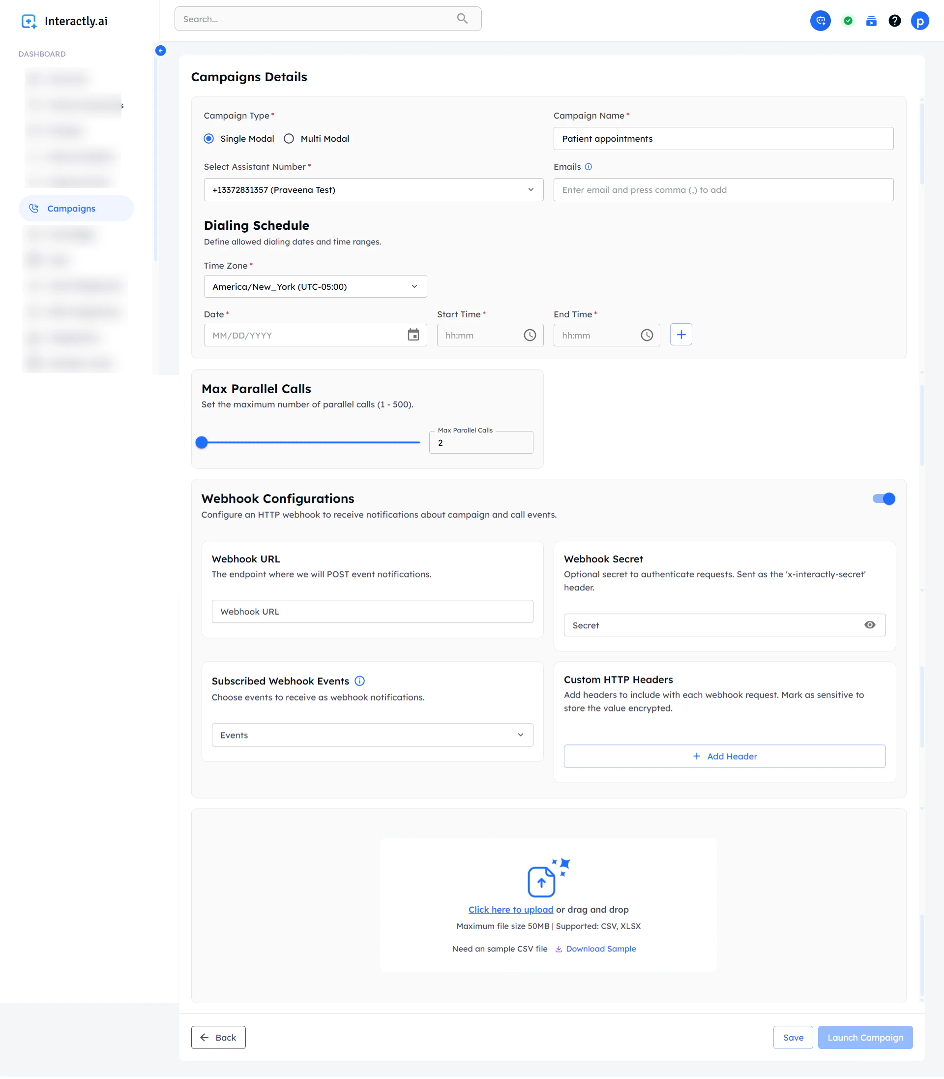 Webhooks allow your application to receive real-time updates about campaign and call statuses. This enables you to build custom integrations and automated workflows.Webhook Configuration
